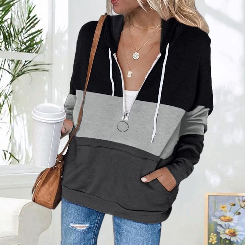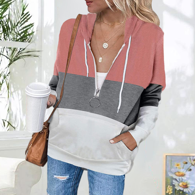 Color Blocking Casual Hooded Long Sleeve Sweatshirt