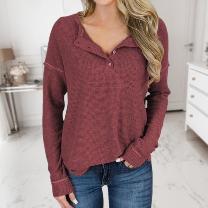 Solid Color Button Long Sleeve Casual T-shirt