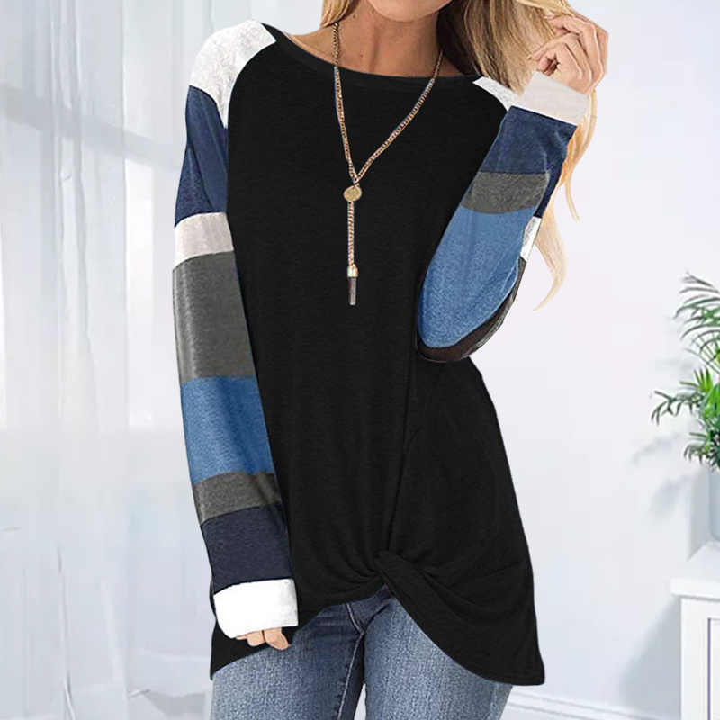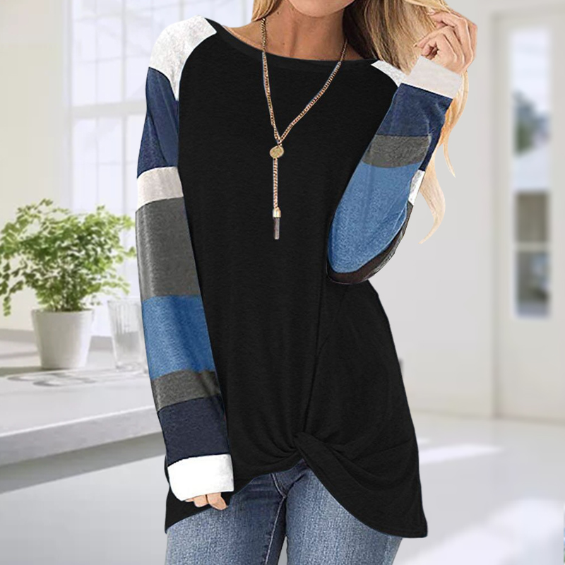 O-Neck Striped Solid Color Long Sleeve T-Shirt