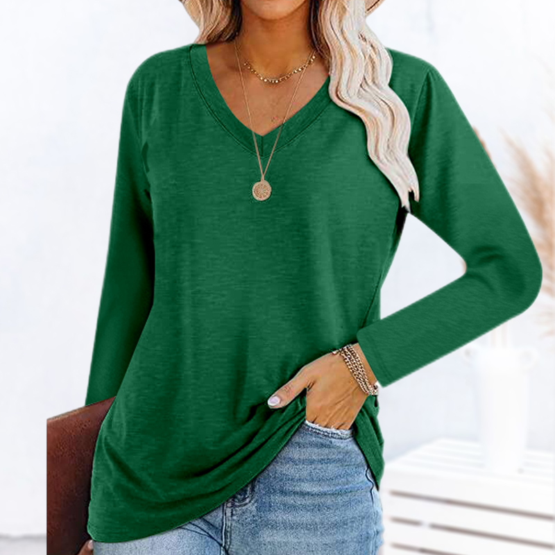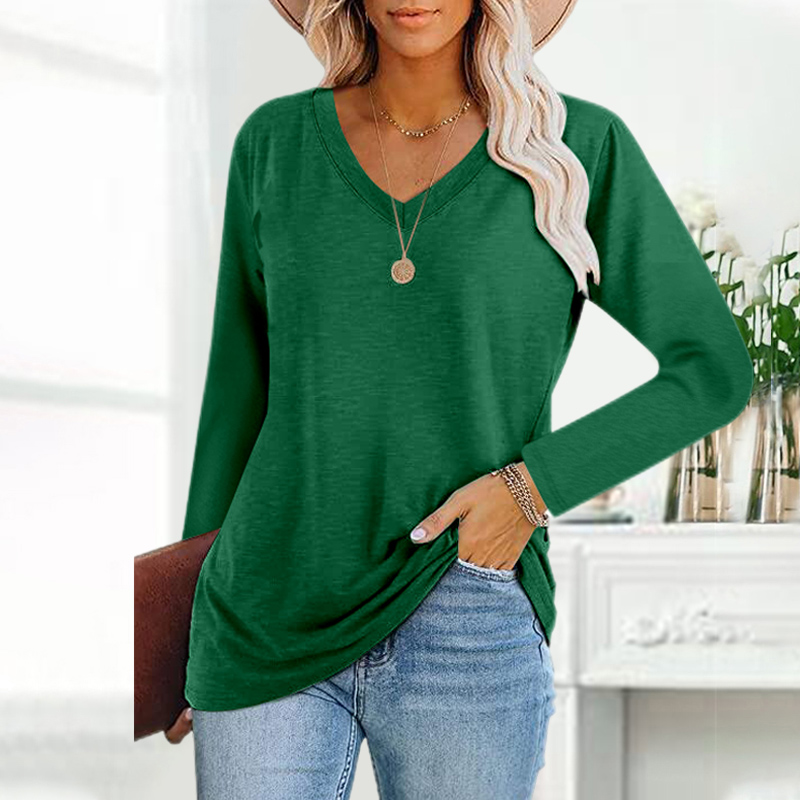 V-neck Solid Color Long-Sleeved Casual T-shirt