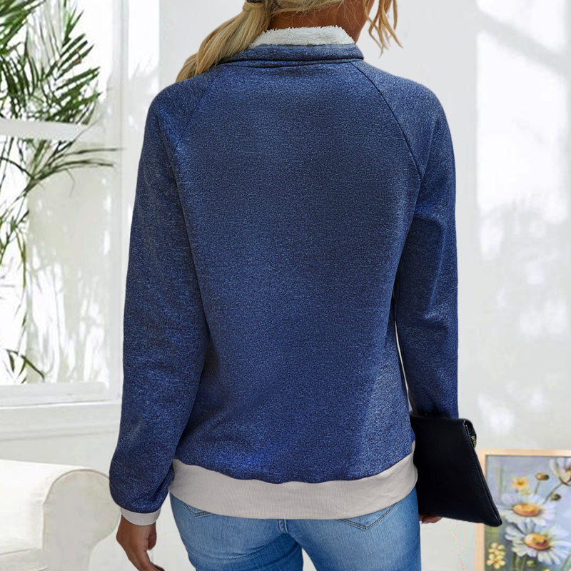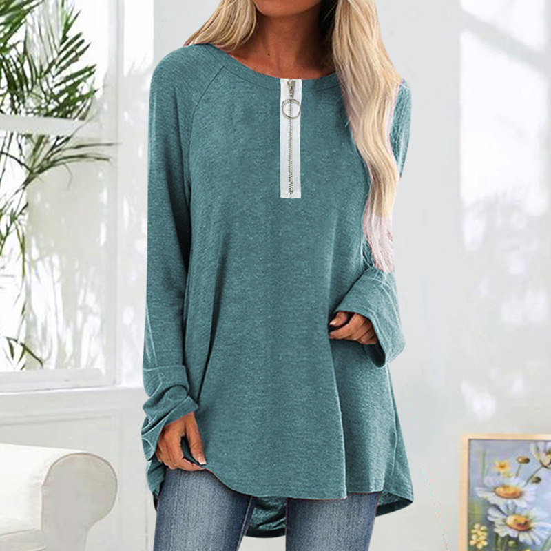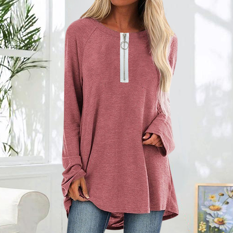 Plus Size Solid Color Casual Zipper Loose Long-Sleeved T-shirt