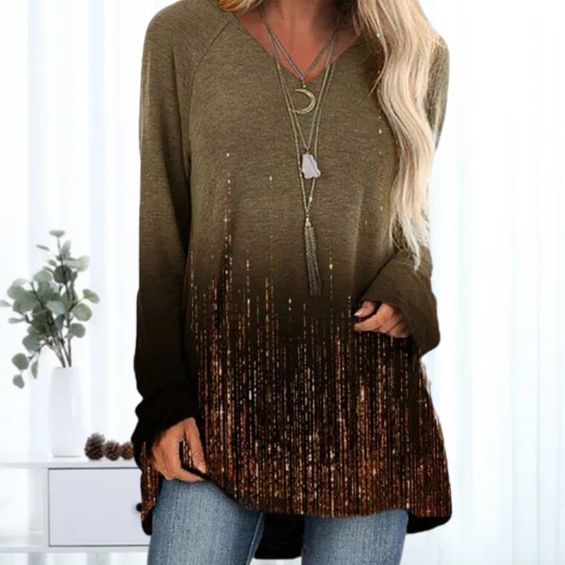 Plus Size Gradient Color Block Long-Sleeved Tunic T-shirt