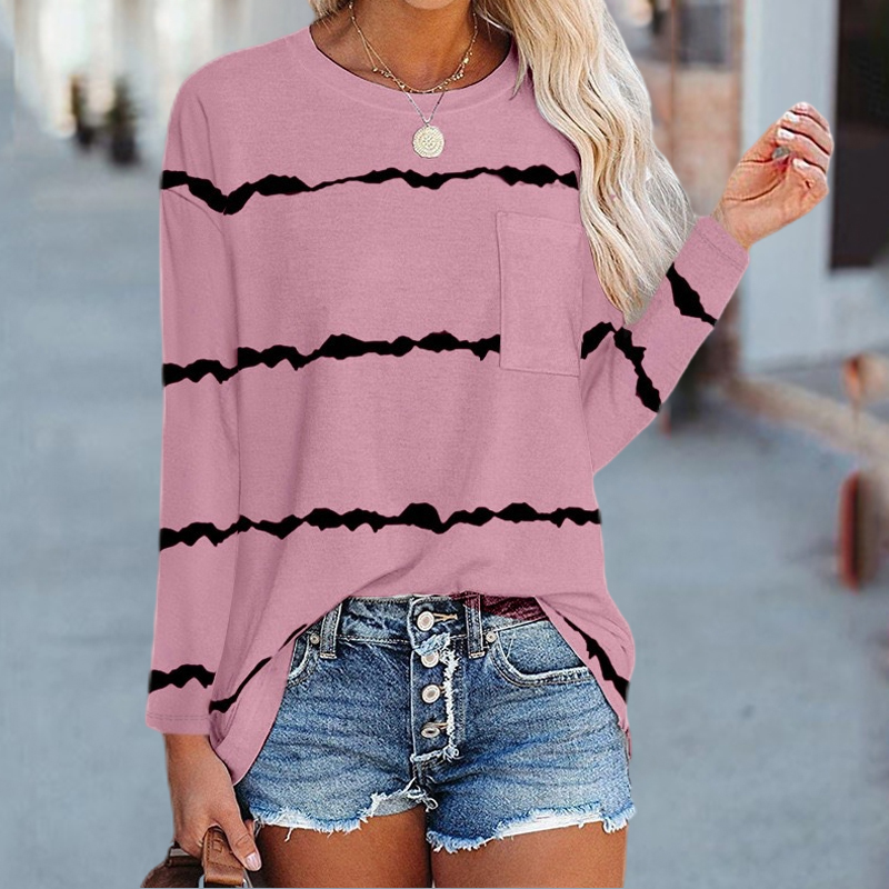 Stripe Casual Solid Color Pocket Long Sleeve T-shirt