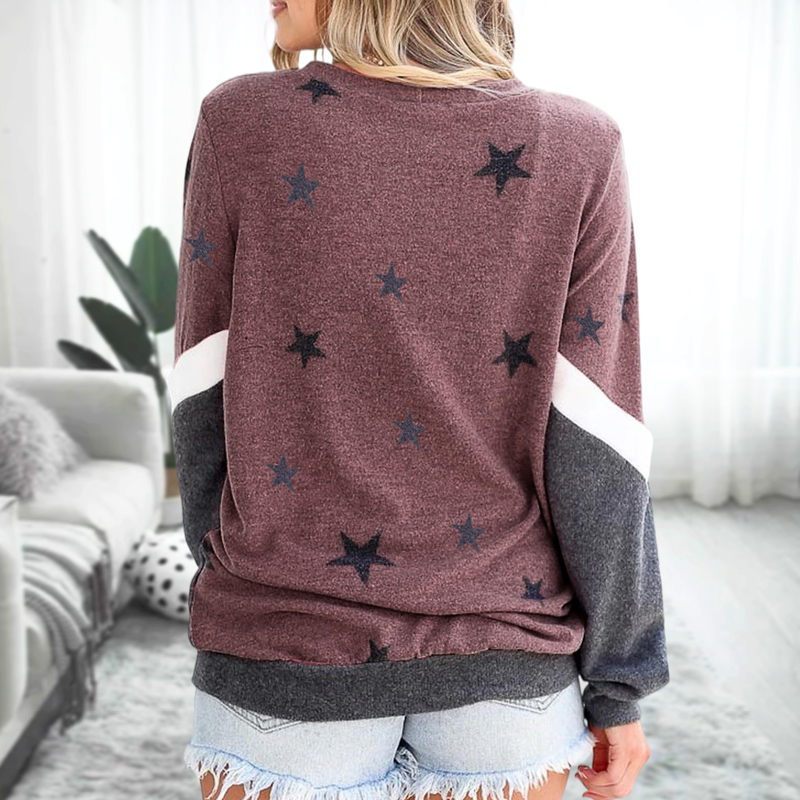 Star Color Blocking Long Sleeve Sweatshirt