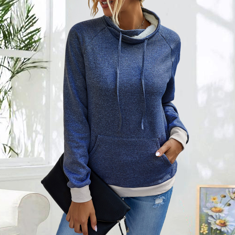 Casual High Neck Drawstring Long Sleeve Warm Sweatshirt