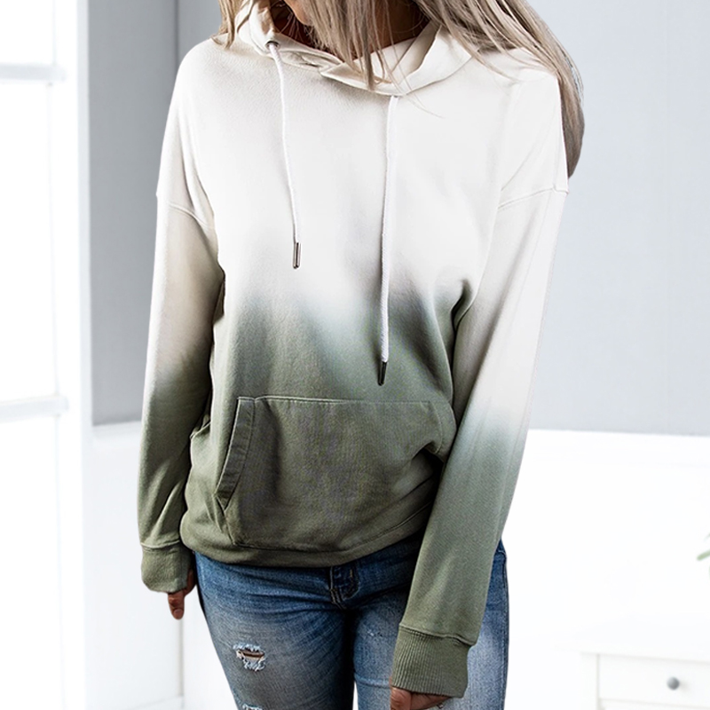 Casual Gradient Color Hooded Long Sleeve Sweatshirt