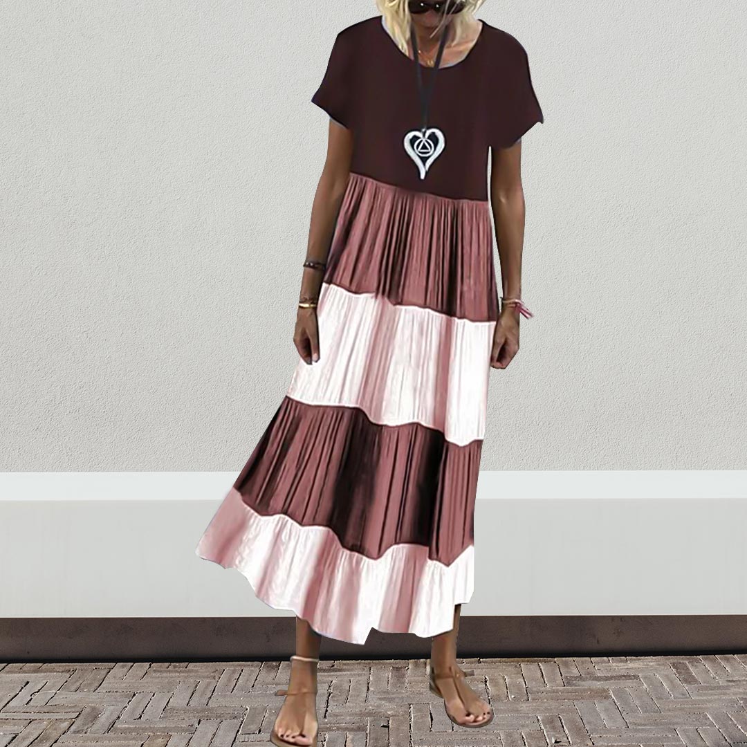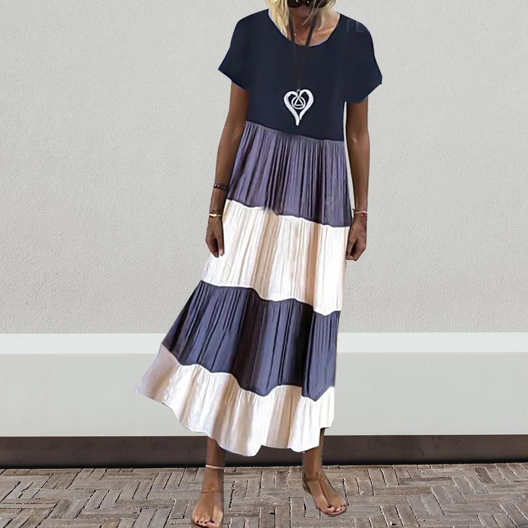 Rose Embroidery Short Sleeve Maxi Dress in Black