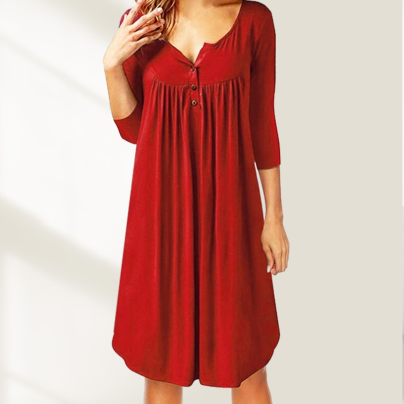Plus Size Solid Color Half-Sleeve Midi Dress