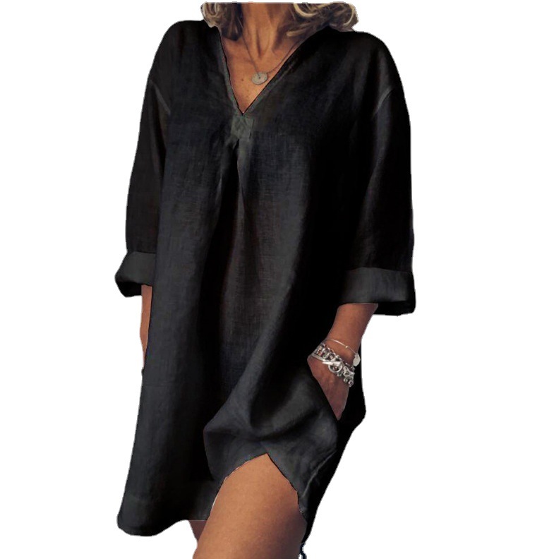 V-neck Linen-Blended Mini Dress