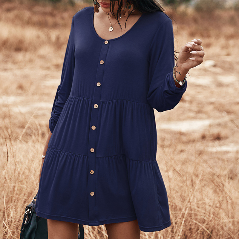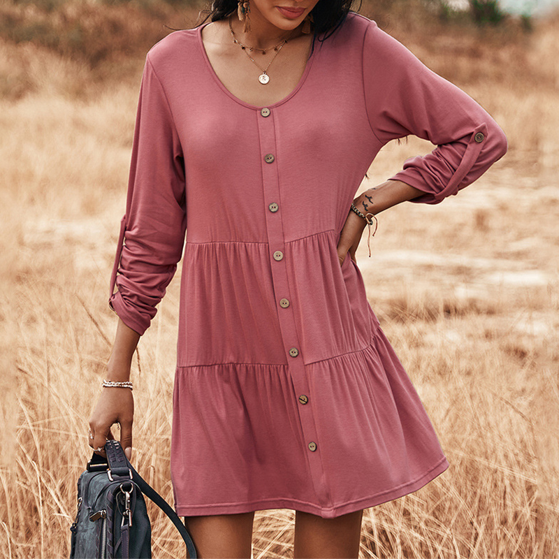 Roll Up Sleeve Tiered Mini Dress