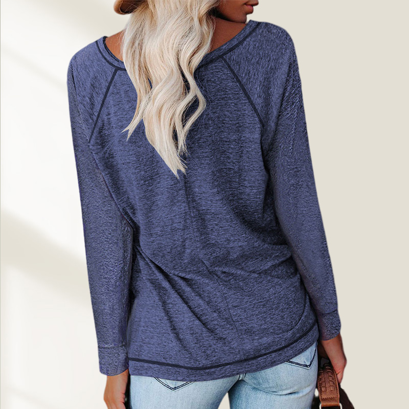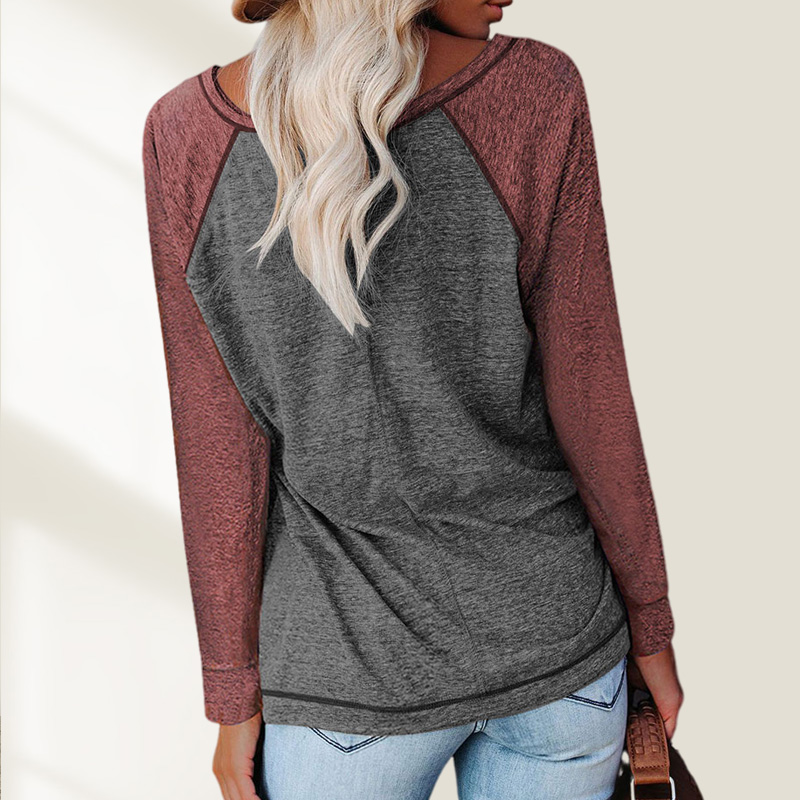 Casual Color Stitching Long-Sleeved T-shirt