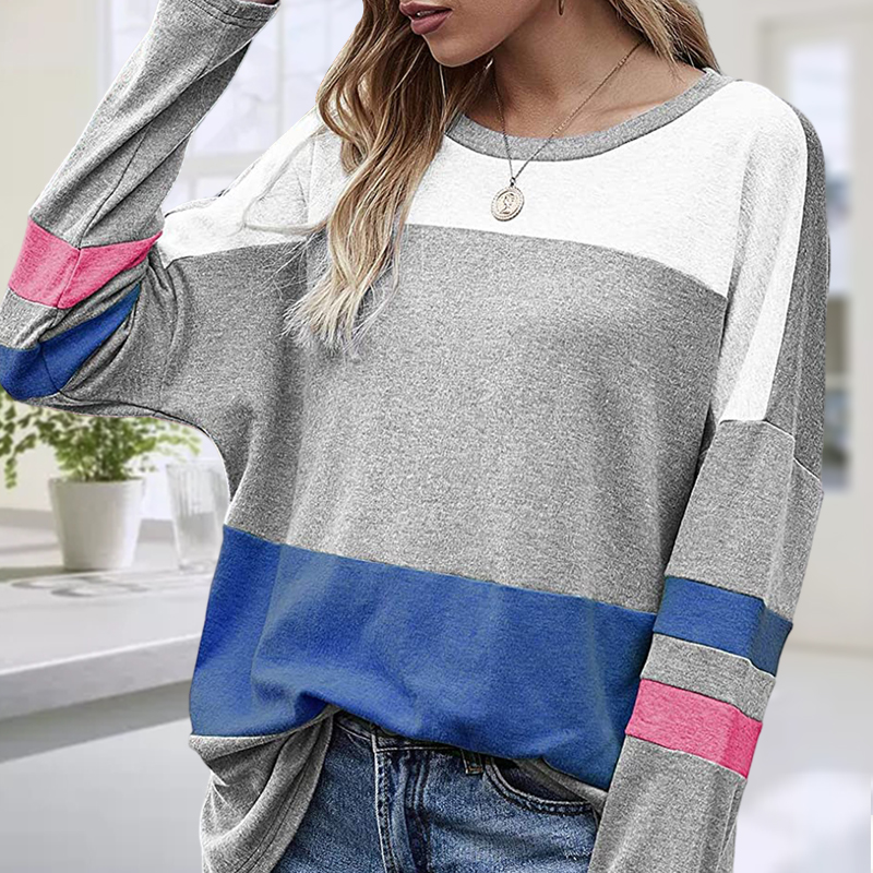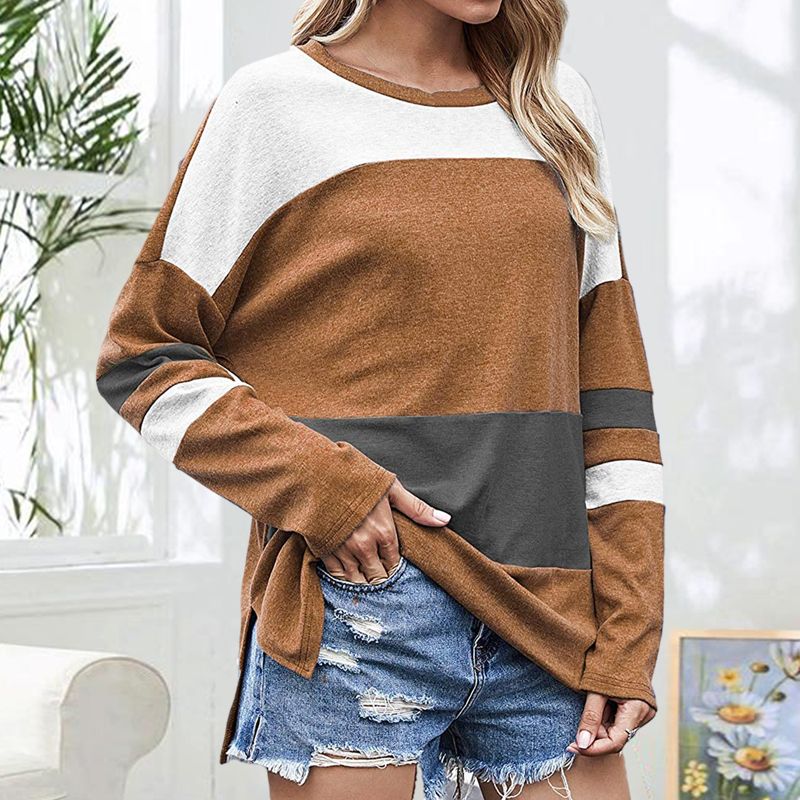 Color block comfortable tunic top shirt for daily wearing, crewneck long-sleeved t-shirt, casual and fashionable, suitable for spring and autumn warm and versatile ladies' tops. Keep it casual with jeans, leggings and boots, or as a bottoming shirt for jackets and coats on cold days. The wardrobe essential of the season.