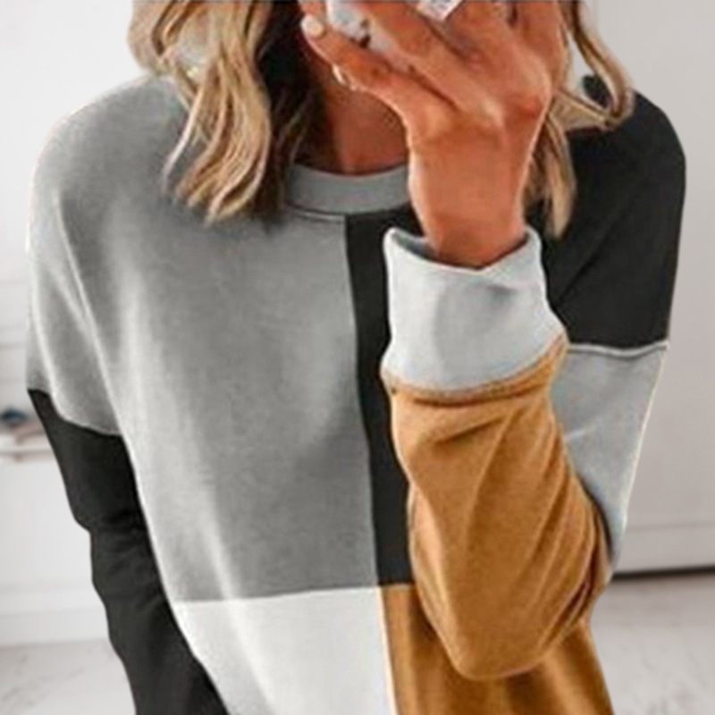 Plus Size O-neck Color Block Casual Long Sleeve Sweatshirt