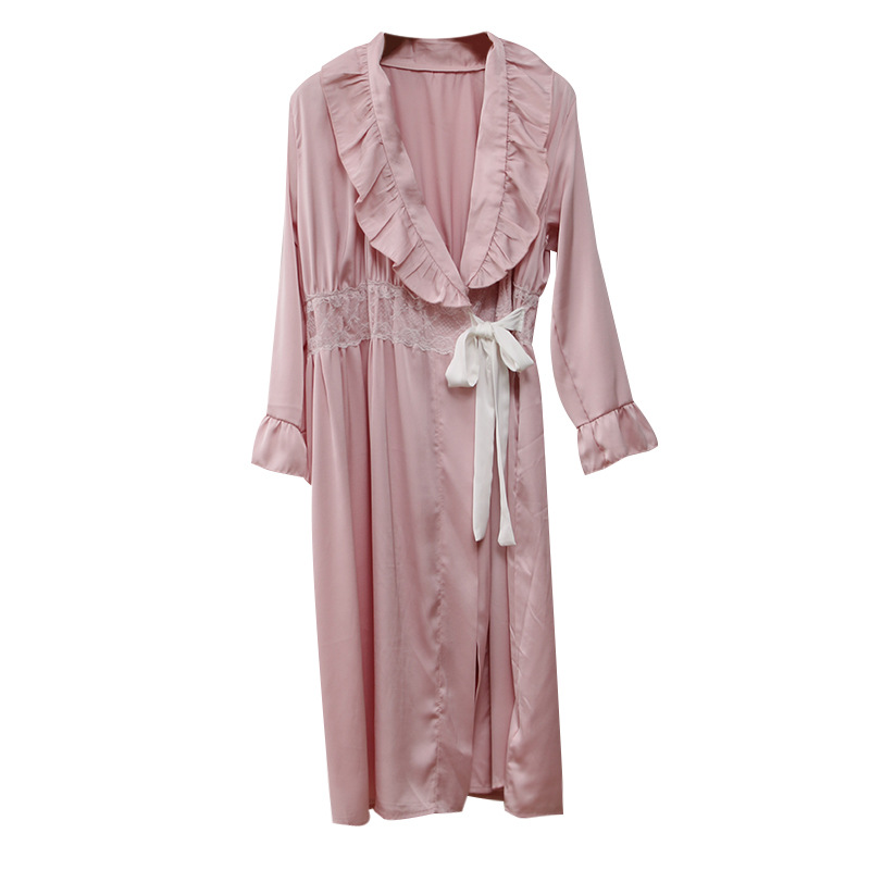 This wrap-front nightgown is the ultimate elegant and romantic nightdress that you can add to your wardrobe. Featuring a soft ruffle on the shoulders and lace detail on the waist, this new night-robe offers the ultimate dreamy silhouette when wearing this stunning masterpiece. Made from super-soft fabric and in beautiful colorways of milky white and baby pink.