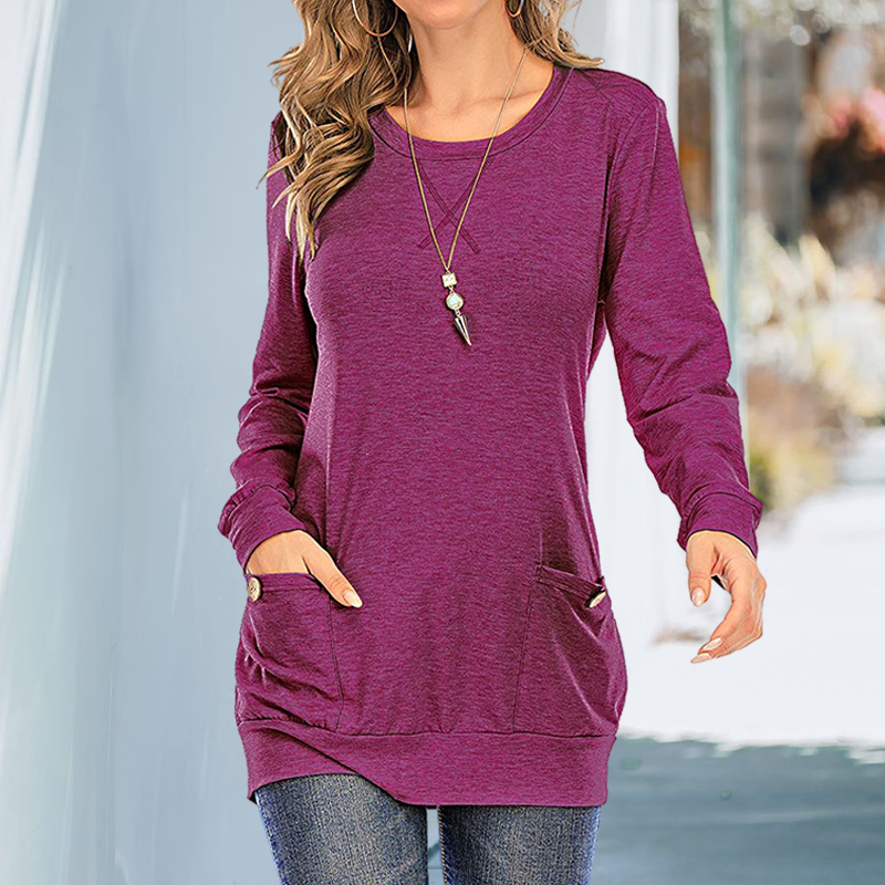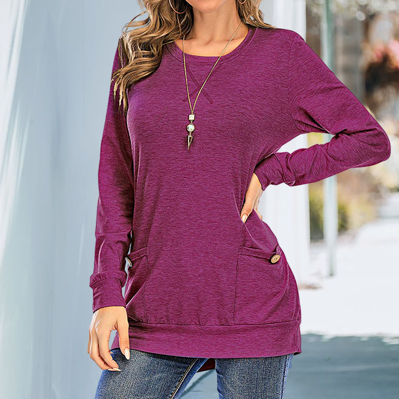 Solid Color Pocket Button Long Sleeve T-shirt