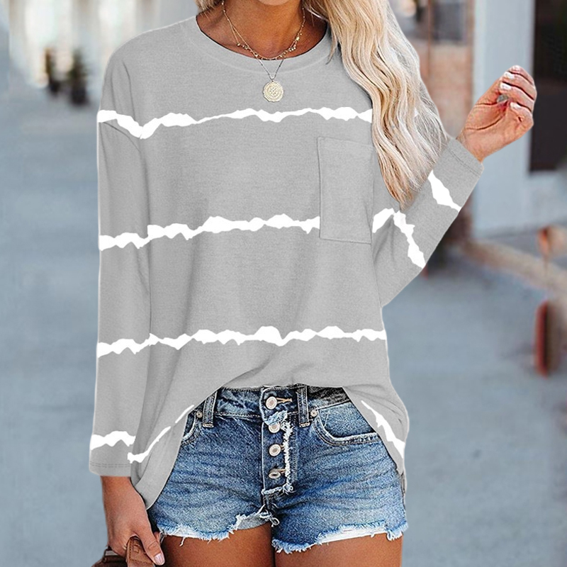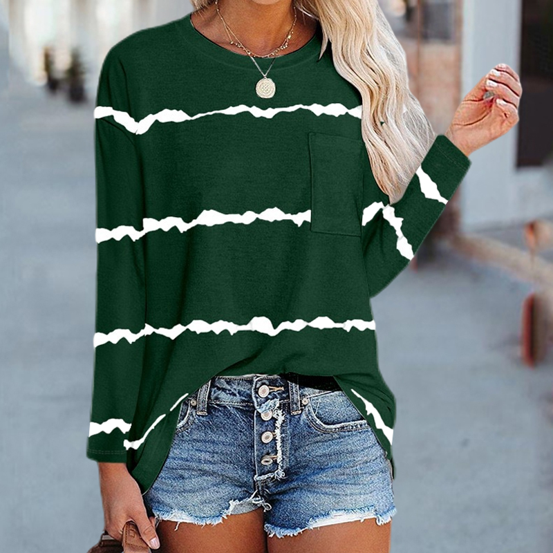 Stripe Casual Solid Color Pocket Long Sleeve T-shirt