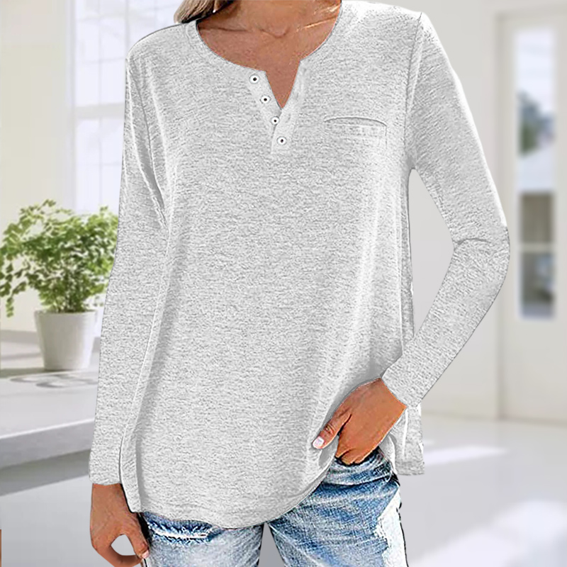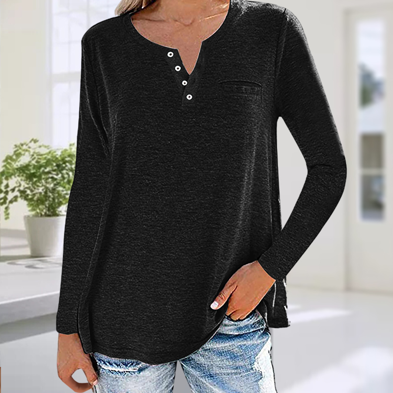 V-neck Solid Color Long-Sleeved Casual T-shirt